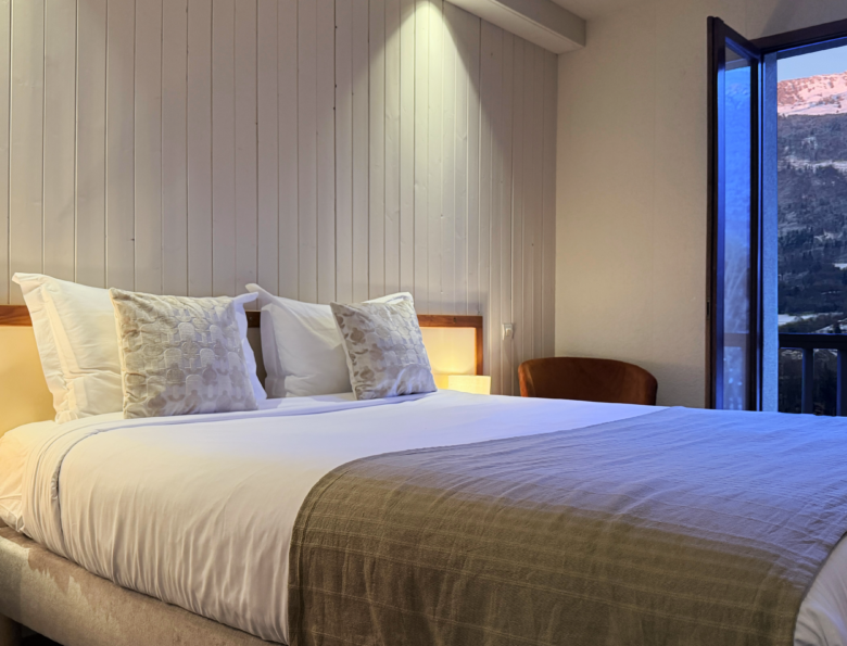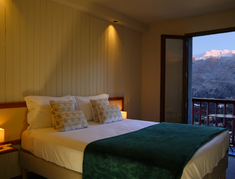De 15 à 19 m2 les chambres à la décoration sobre sont tournées vers le massif du « Grand Arc », au calme, bénéficant d’un bel ensoleillement matinal. Toutes les chambres sont équipées de salle de bain privatives, de télévisions et du wifi gratuit.